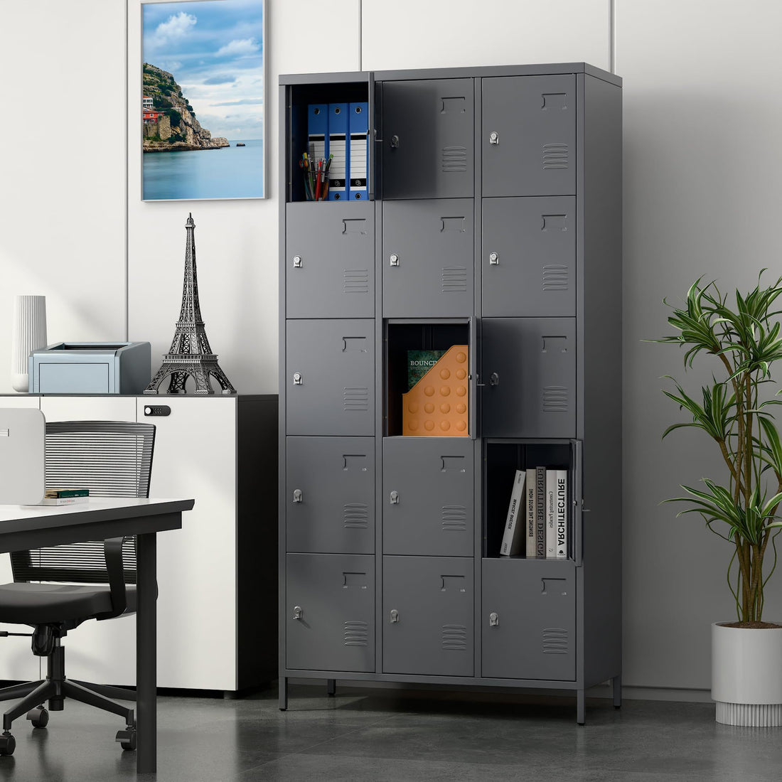15 Doors Metal Lockers For Employees For Offices School Gyms Home,Assembly Required,Dark Gray