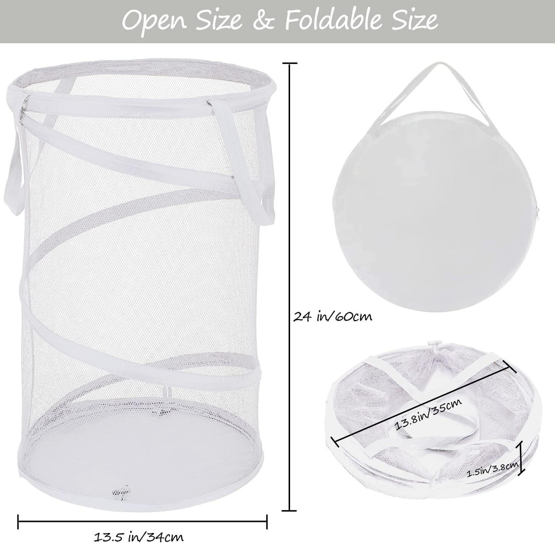 Large Collapsible Laundry Basket Foldable Mesh Up Hamper With Handles For Laundry Room, Bath, Kids Room, College Dorm, Travel, Storage Organizer White