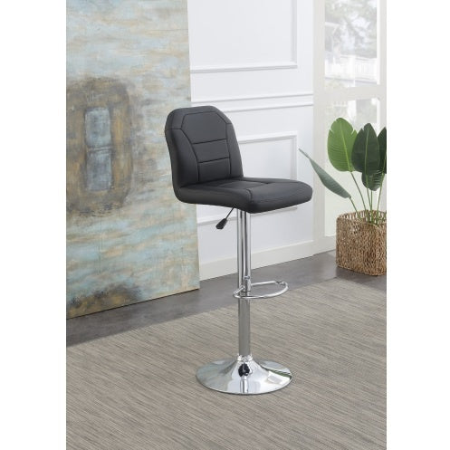 Adjustable Bar Stool Chair Black Faux Leather Clean Lines Seat Chrome Base Modern Set Of 2 Chairs