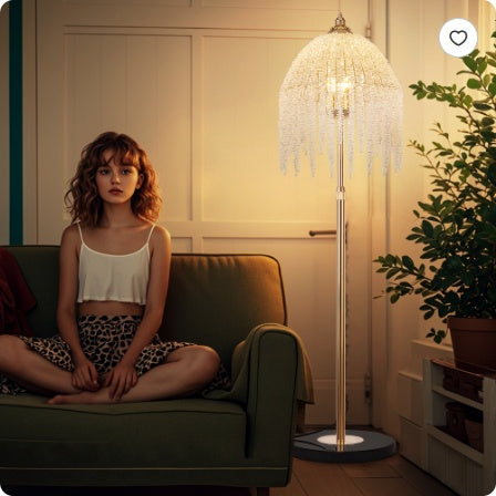 Stunning Waterfall Design: The floor lamp features a cascading waterfall design made of hanging crystal...