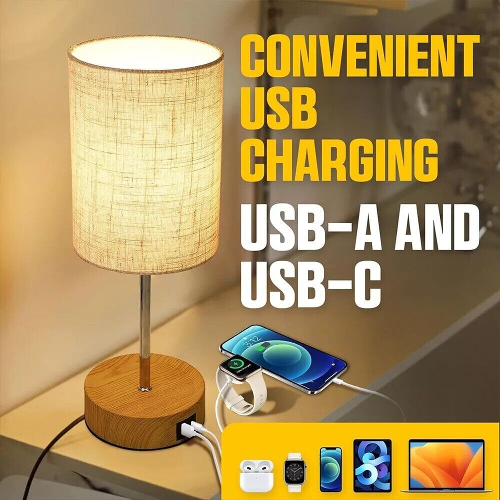 Touch Control Bedside Lamps, 3-Way Dimmable Table Lamp With USB Charging Ports