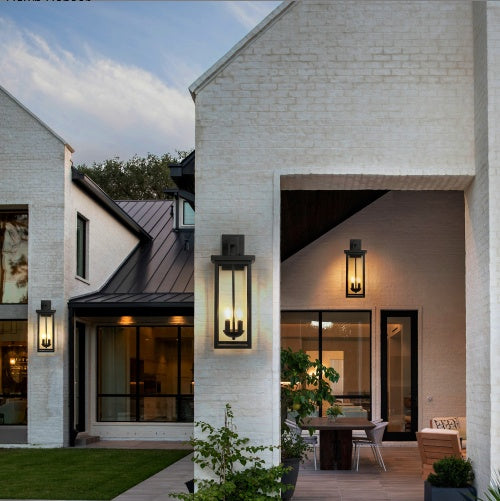 Product Name:1-Pack 22.0" Outdoor Wall Lantern with Dusk to Dawn Sensor, Matte Black Finish, Clear Glass Panels, Weatherproof Exterior Light for Porch, Patio, Garage, 2-Light Design (Bulb Not Included)