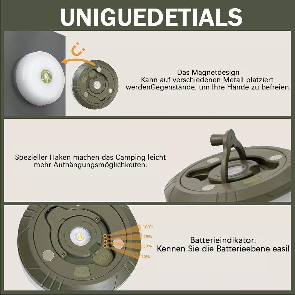 【2 In 1 Combining Light】This is an integrated camping light that seamlessly combines camping lights and string lights. Enjoy the cozy ambiance of the 10m long outdoor string light or switch to lantern mode lighting up the outdoor adventures.