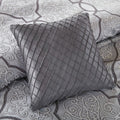 The Madison Park Lavine 12 Piece Bedding Collection gives your bedroom a rich and luxurious makeover. The comforter features a metal grey jacquard woven fabric with a 3D effect created by a damask design in light and dark grey. The two pillow shams match the comforter design to enhance the luxury style. Two decorative pillows with embroidery and fabric manipulation details coordinate with the two euro shams for a stunning bedroom look. The set also comes with a complete ivory 100% cotton sheet set that adds a cozy touch to the bedding set. The items in the set may arrive in a rolled or compressed form, so you may need to fluff them up or steam iron them to smooth out any wrinkles.