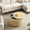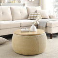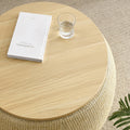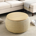 2-in-1 Round Storage Ottoman End Table, Natural 25.5x25.5x14.5