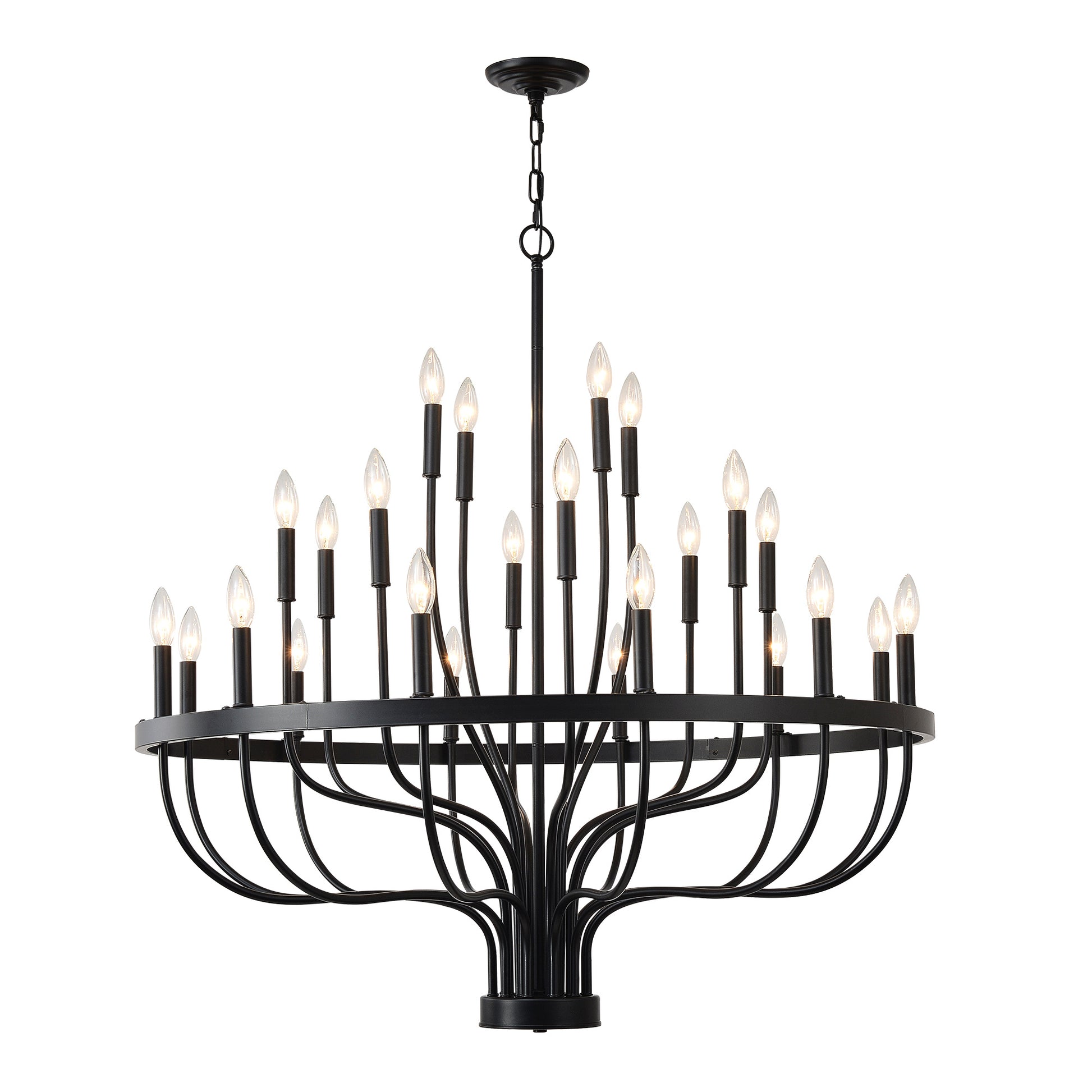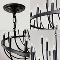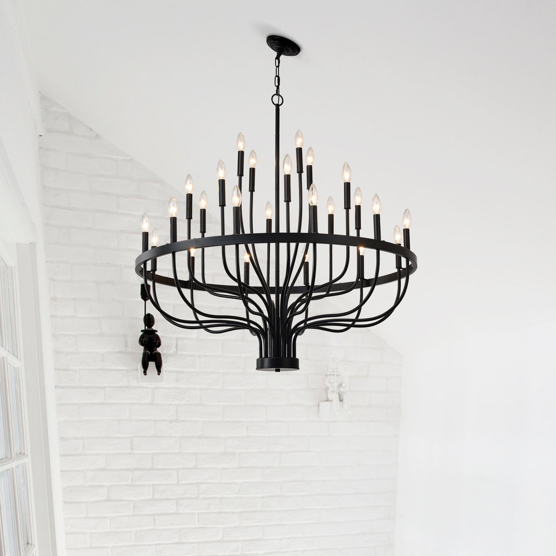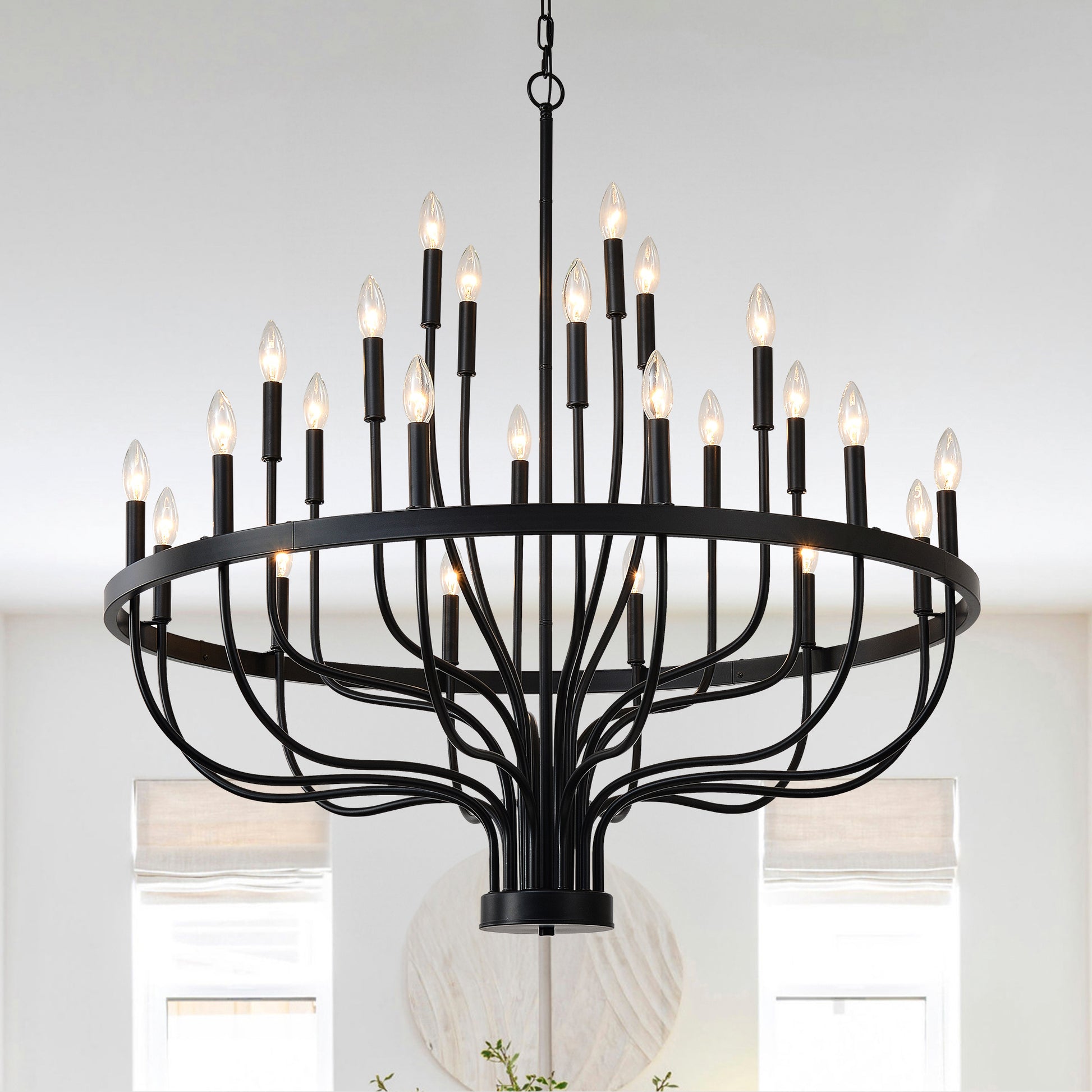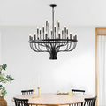 24-Light Black Chandelier Industrial Iron Candle Chandelier Modern Suspended Farmhouse Chandeliers Pendant Light Fixtures For Dining Room Bedroom Living Room Kitchen Island Foyer E12 Bulb