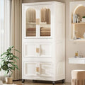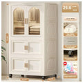 25.59 Side Wide Folding Wardrobe 25.59x15.75x57.09 With Magnetic Door Plastic Storage Cabinet With Wheels One Layer Of Wardrobe X Two Layers Of Folding BoxesX 10 Hangers