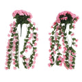 2PCS Artificial Violet Hanging Flowers Simulation Plastic Fake Plants for Decoration Garden Patio Wedding Porch Outdoor Rose Red