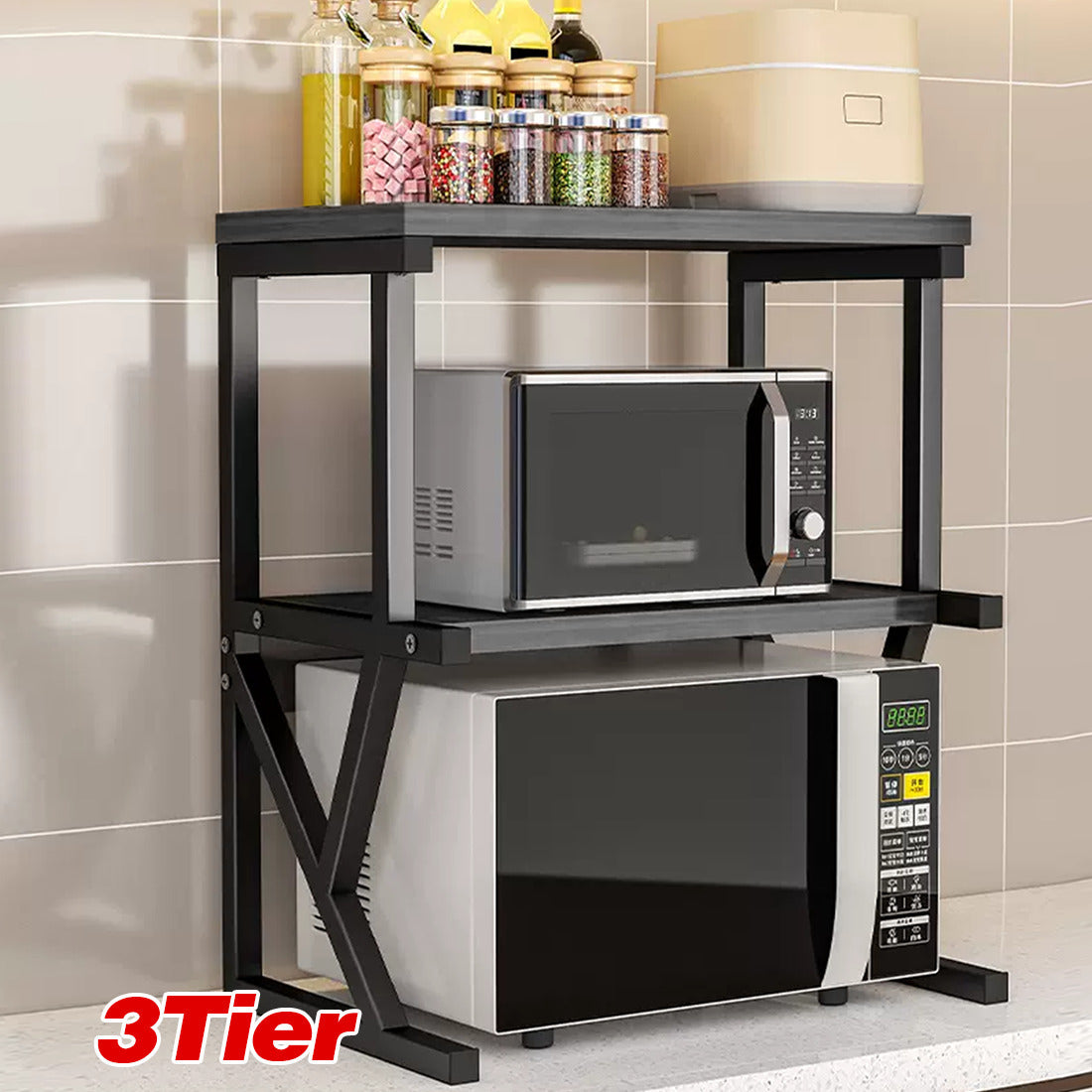 3 Tier Expandable Microwave Oven Rack Stand Storage Holder Kitchen Corner Shelf