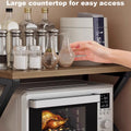 Large Storage Space: This microwave oven rack will become your daily kitchen storage helper, itâll be much easier to access your bottles, jars, spoon, etc. No need to afraid of finding things since they are at the same storage place and can be easily cleaned up.