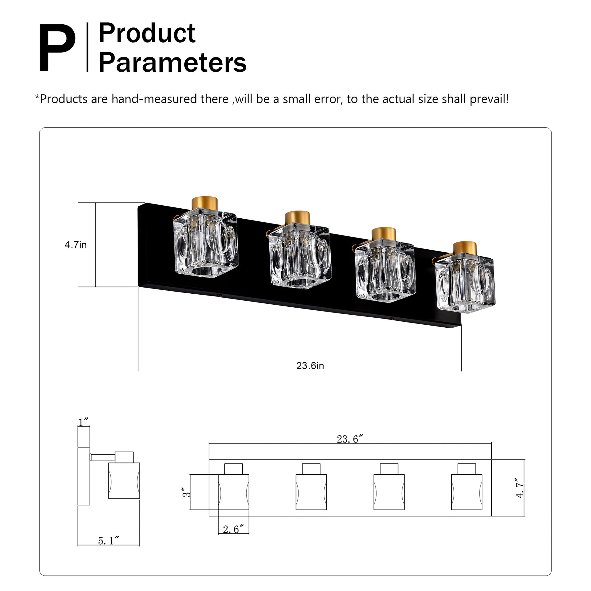 Product Name:4-Light Matte Black + Gold Bathroom Light Fixtures, Modern Vanity Lights with Crystal Glass Shade, Vintage Light Fixture Bathroom Over Mirror Wall Lights for Kitchen Dinning Room Bedroom Hallway