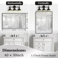 40x30 inch Smooth Black Bathroom Mirror Wall Rectangular Vanity Mirror Corner Hanging Farmhouse Mirror Modern Metal Frame Rectangular Mirror, Decorative Square Corner Mirror (Horizontal & Vertical)