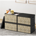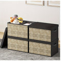 4pcs Green Rattan Rectangular Storage Bins With Handles, Collapsible Fabric Cube Organizers, Multipurpose Lidded Containers For Toys, Clothes - Non-Waterproof, Box, Cabinet, Rack For Outdoor Storage