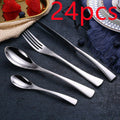 4PCS Set Black Stainless Steel Cutlery Korean Dinnerware Set Gifts Mirror Polishing Silverware Sets Scoop Knife and Fork Sets