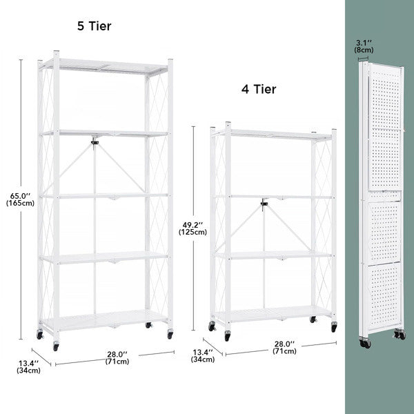 - Removable Casters and Wheels: The foldable storage shelves feature 4 professional-grade casters for easy mobility.