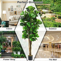This high-quality artificial tree is 71'' high. Natural trunks make it highly realistic, most won't know it’s not real. The clear texture and even color of the leaves are vivid, truly replicating the look of a real fiddle leaf fig tree. The simulated moss in the flowerpot makes it look more realistic and beautiful.