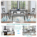 6 Piece Kitchen Dining Set, Rectangular Wooden Dining Table With 4 Upholstered Chairs And A Bench, Dining Table Set For 6 People, Living Room, Home Bar And Kitchen, Gray
