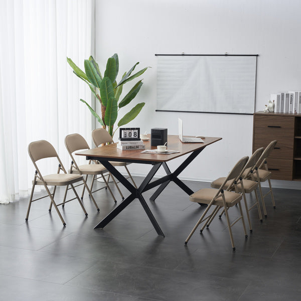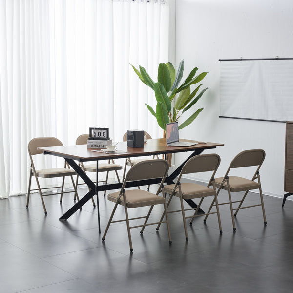 6PCS Simple Leather PVC Steel Pipe Light Brown Folding Chair Upholstered Folding Chair 40x45x78cm
