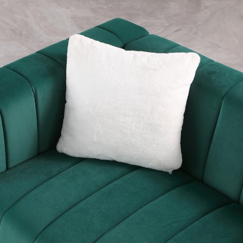A modern channel sofa take on a traditional Chesterfield, the sofa is a statement - making piece of beautiful design. Rich velvet is chanelled on both the inside and outside of the frame, a beautiful design detail that can be seen from any angle in a room. Single "bench" cushions allow for comfortable multi person seating without cushion separations