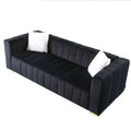 A Modern Channel Sofa Take On A Traditional Chesterfield,Black Color,3 Seater