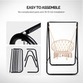 Enjoy a relaxing experience with this durable and space-saving hammock chair stand. Designed with a secure double-hook system, this stand accommodates most hanging chairs while occupying minimal space. Its A-frame design provides exceptional stability and durability, making it perfect for both indoor and outdoor use. Crafted from weather-resistant, powder-coated steel, it prevents rust and ensures long-lasting support with a maximum weight capacity of 600 lbs. Easy to assemble with all necessary hardware included, this stand lets you set up your perfect relaxation spot in minutes.