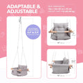 Canvas Baby Swing Wooden Hanging Swing Seat Chair With Safety Belt Durable Baby Swing Chair Outdoor And Indoor Swing For Kids Mounting Hardware Included Taupe Gray