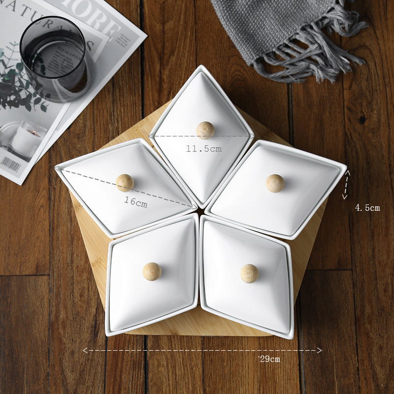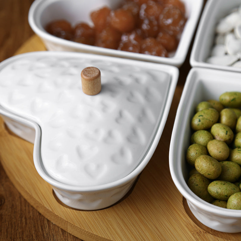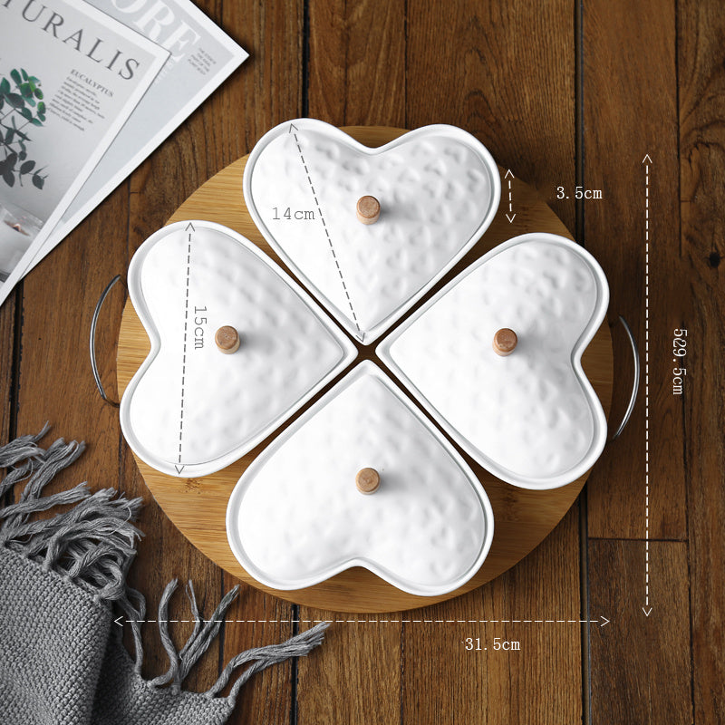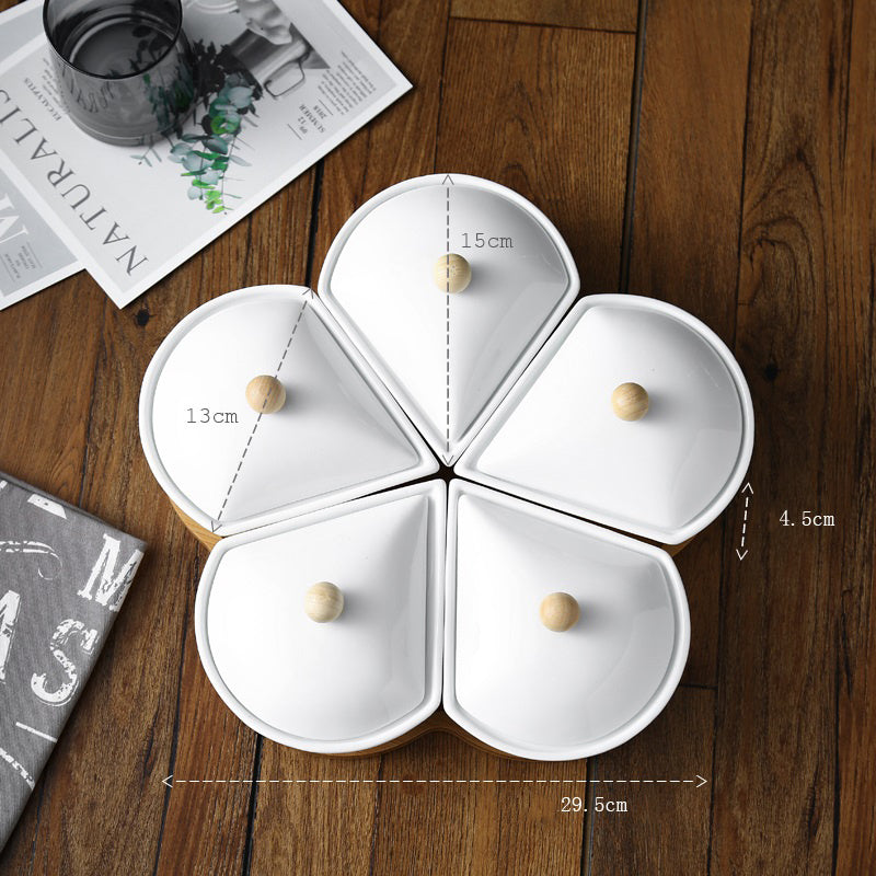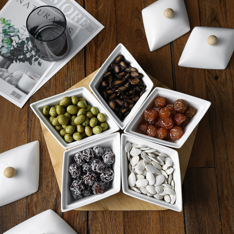 Ceramic Compartment Fruit Plate Afternoon Tea Snack With Lid Snack Nut Platter