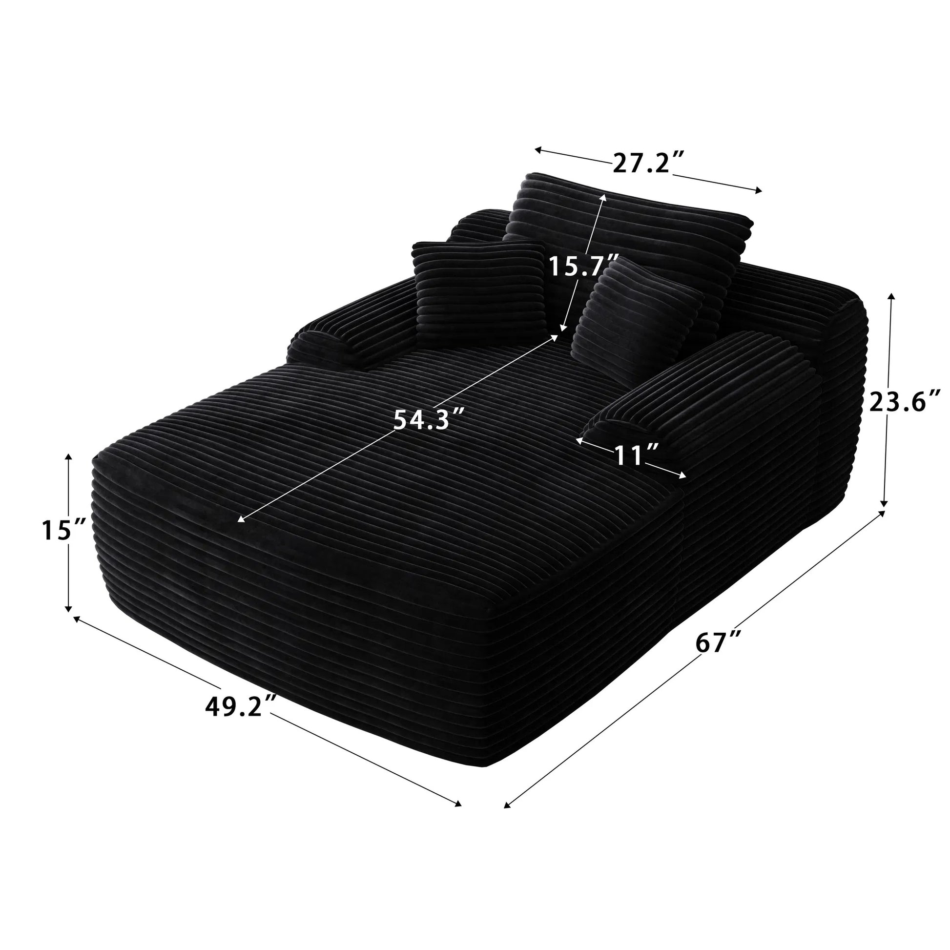 Chaise Lounge Chair, Couches For Living Room, Oversized Upholstered Sleeper Indoor, Cloud Sofa Bed Indoor Deep Seat, No Assembly Required Corduroy Black