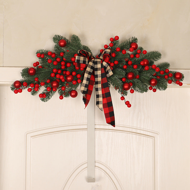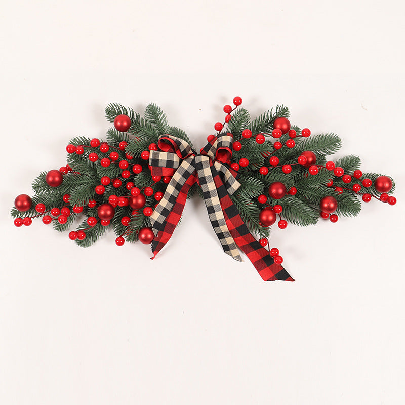 PE Red Fruit plaid Christmas lintel N601/70A (no lights),PE Red fruit plaid Christmas lintel N601/70A (with lights)