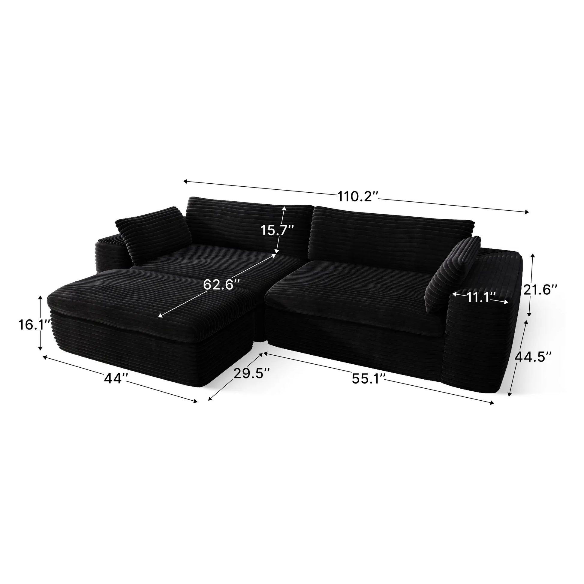 - Corduroy Fabric:Experience the lavish comfort of our enhanced corduroy fabric, offering unmatched softness and warmth. Its impressive durability and stain-fighting prowess keep your sofas looking fresh and lively. With a variety of color choices, our corduroy chaise sofa lets you showcase your unique style while adding irresistible charm to your space