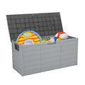 260L Garden Storage Box With Wheels - Formed in hard wearing and durable plastic which is water-resistant, weatherproof, and UV resistant, with a slatted wood-effect finish. Fully sealed design protects against insects and other pests