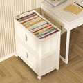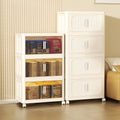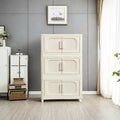 Cream White 19.69 Side Wide Folding Storage Cabinet ,3 Tiers,19.69x11.81x31.1,Collapsible Storage Bins With Magnetic Door, Plastic Storage Cabinet With Wheels
