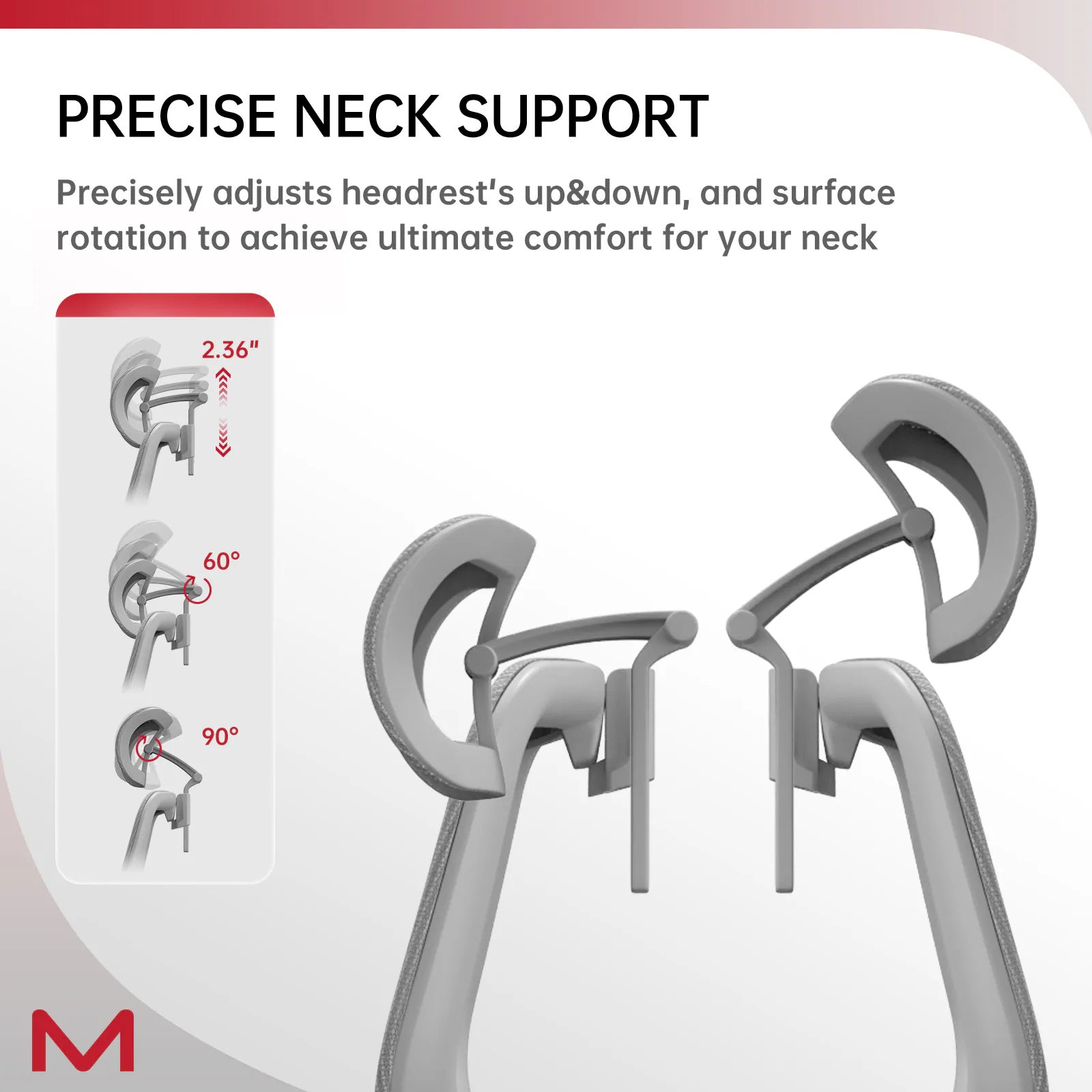 - 3D Adjustable Headrest - The width and height of the headrest are 13.8" and 6.3", much larger than other office chairs'. lt has an adjustable height range of 2.36". The 3D headrest has also design of flexible adjustment for optimal neck support, 90°fit rotation and 60°height rotation allowing for adjusting to your best position, promoting good posture for cervical spine health. The headrest is made of skin friendly flocked mesh fabric, soft to the touch and breathable, this headrest ensures a soothing and comfortable experience, keeping you cool and comfortable even during long hours of using.