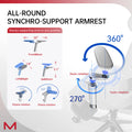 - All-rounded Synchro-Support Multi-Adjustable Armrest - The armrests of this ergonomic chair support 20” front & back adjustment, 1.8” left & right adjustment and 3.1” up & down adjustment to get the most comfortable sitting posture as you need. This armrest supports 360°1st axis rotation and 270°2nd axis rotation, which provides comprehensive arm supports in any gestures you want, even when reclining. The armrests are made with skin-friendly PU leather to provide you with more comfortable support. No matter what your need: eating, working, reading, resting or gaming, the multi-adjustable armrest could provide you the best comfy and relaxing experience.