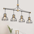 Dining Room Light Fixture Chandelier Over Table, 40-Inch Hanging For Farmhouse Linear Chandeliers,4-Light Kitchen Island Lighting,Matte Black And Matte Gold Ceiling Chandelier,with Metal Lampshade