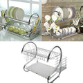 Double Layer Tableware Drying Rack Drain Stainless Steel Kitchen Utensil Rack