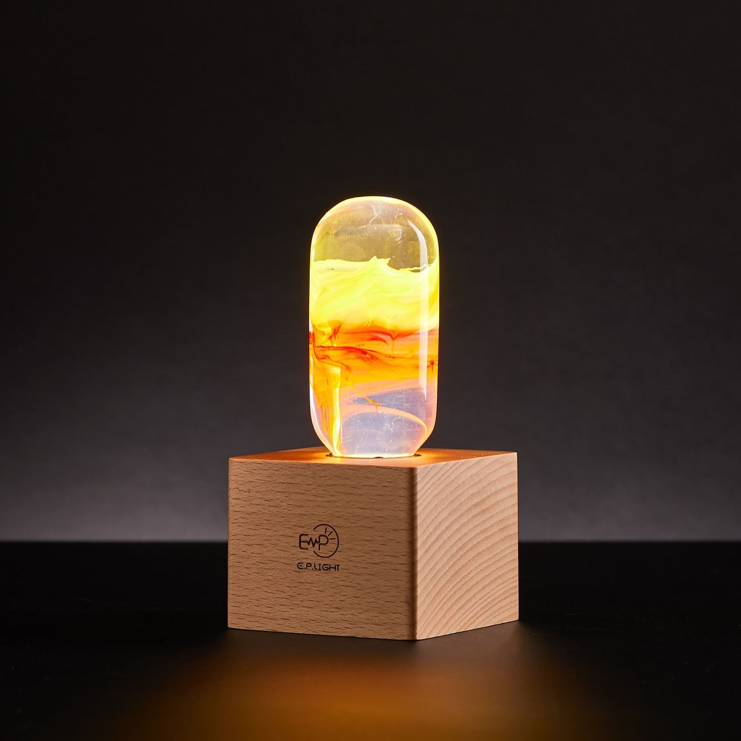 EP LIGHT FLAME LED Bulb Table Lamp, Vintage Style Wooden Table Lamp For Livingroom Bedroom