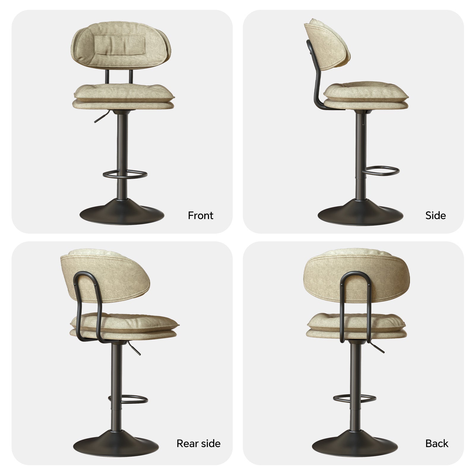 - 【360°Swivel and Adjustable Height】The rotation of the swivel bar chairs are smooth, and the rotation does not produce abnormal noise, With adjustable height and a 360°swivel feature, Adjust the stool chair height from 24.8" to 33.5" to accommodate various heights.Allowing you to easily change direction for daily use and social.
