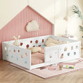Full Size Floor Bed With Slats, Solid Wood Bedframe With Heightened Safety Guardrails And Door, For Girls, Boys, Teens, Child Bedroom, Kids Playroom, White