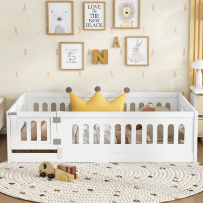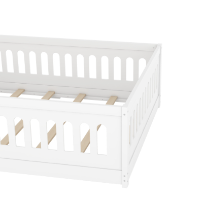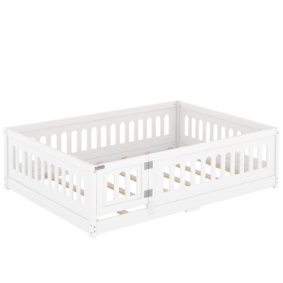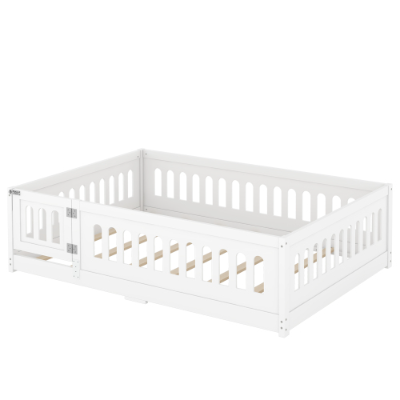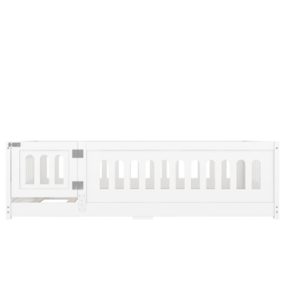 Product Name:Full Size Floor Bed with Slats, Solid Wood Bedframe with Heightened Safety Guardrails and Door, for Girls, Boys, Teens, Child Bedroom, Kids Playroom, White