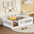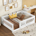 Full Size Floor Bed With Slats, Solid Wood Bedframe With Heightened Safety Guardrails And Door, For Girls, Boys, Teens, Child Bedroom, Kids Playroom, White
