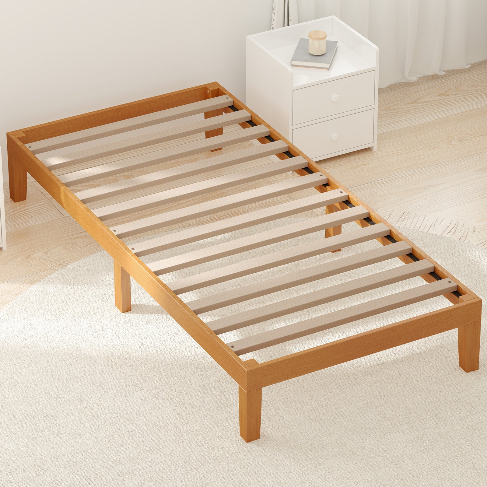 - NO SPRINGS REQUIRED: The sturdy, closely spaced wooden slats of this bed frame support all types of mattresses, prolonging their life without the need for springs.