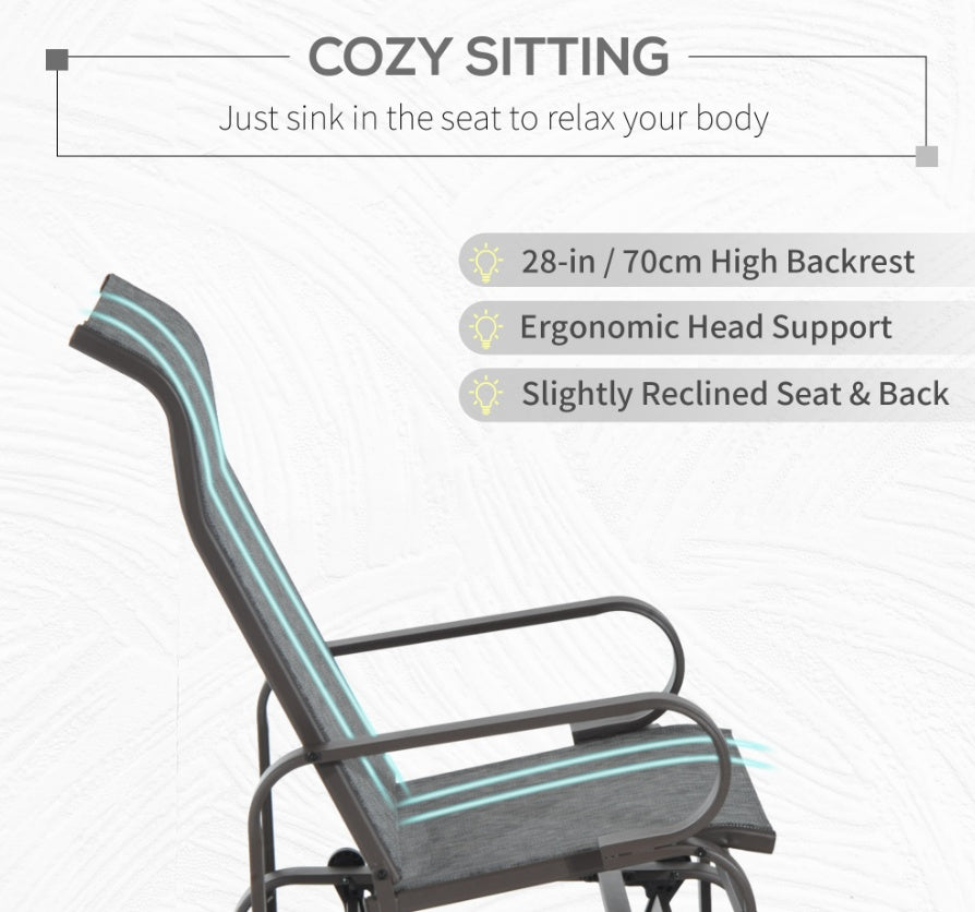Gliding Rocking Chair, Patio Swinging Chair With Smooth Rocking Arms And Lightweight Construction For Patio Backyard, Gray