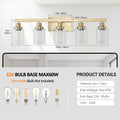 Gold 5 Light Vanity Light With Clear Glass Shade, Modern Iron Bathroom Wall Fixture For Bathroom & Dresser - No Bulbs Unavailable Platform- Temu