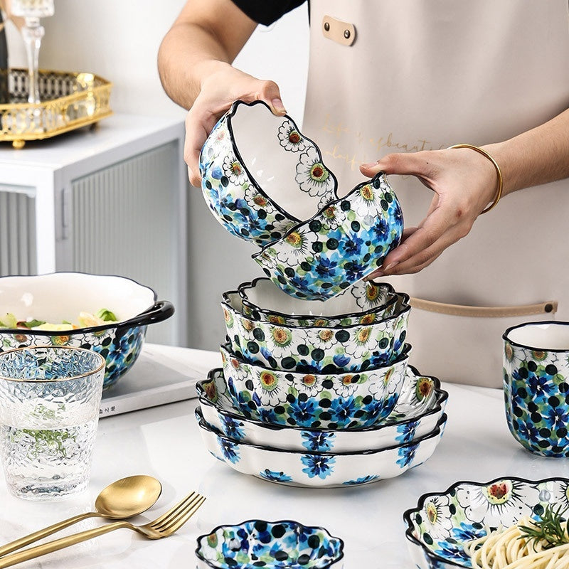 Hand-painted Ceramic Bowl Household Noodle Bowl Creative High-looking Bowls And Plates Tableware