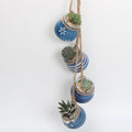 F: 4 blue and yellow hanging pots