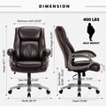 COMFORT & ERGONOMICS: Colamy heavy duty office chairs are designed with comfort and ergonomics in mind, featuring a high-end foam cushion waterfall-style wide seat. With built-in cushion springs, lumbar contour support, cushioned armrests, and a soft cushion headrest, these designs not only provide exceptional comfort but also ensure your spine and lumbar receive the right support. CLASSIC APPEARANCE & PREMIUM MATERIALS: Marrying classic and modern aesthetics, our brown leather office chair are crafted from high-quality perforated brown PU leather, offering superior breathability. Exquisite stitching enhances the executive office chair's durability, ensuring long-term quality. These home office desk chairs are built to last, providing enduring comfort and support while adding a touch of classic elegance to your workspace. PLUS SIZE: This heavy duty 400lb office chair features a big and tall design, providing excellent support for the back, shoulders, and neck. Additionally, the plus size office chair boasts a wide seat, with 23.83’’ width and 19.69’’ depth. This office chair big and tall is the ideal choice for heavy people, with a maximum weight capacity of up to 400lbs. ADJUSTABLE FEATURES: Our desk chairs with wheels and arms offer adjustable height and tilt functions. The seat height can be easily adjusted, and the tilt function allows you to rock 15°forth and back. Additionally, equipped with a tilt tension knob, you can adjust the tilt intensity according to your needs. This wide office computer chair’s design not only allows you to freely enjoy the comfort of the wide office chair to the fullest. VERSATILE FOR VARIOUS OCCASIONS: Our high back office chairs blend classic and modern styles, featuring adjustable height, tilt angles, and a tension knob. This wide seat office chair is not only suitable for different individuals but also versatile for various settings, including home offices, studying, conference rooms, providing exceptional comfort and utility. EASE OF ASSEMBLY: Our lumbar support office chairs are easy to assemble, coming with detailed instructions and specialized assembly tools to an efficient assembly process. In case you encounter any issues during assembling desk chairs with wheels, feel free to reach out to us at any time. They will provide professional guidance and advice to ensure a smooth assembly experience. BUY WITH CONFIDENCE: Our office chair plus size 400lb come with a worry-free one-year warranty. If you encounter any quality issues or inconveniences during this period, simply contact our customer service team, and we will promptly address the issue to ensure you enjoy a premium shopping experience.