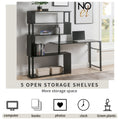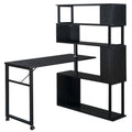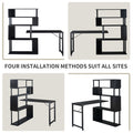 Home office computer desk L-shaped corner table, rotating computer desk with 5 layers of bookshelves, four installation methods, lockable casters (black)