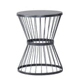 - The frame of this side table features a sleek, modern hourglass structure and an open cage design, making this piece great for any area in need of something new.