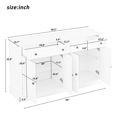 Large storage space: With 2 drawers at the top and 4 doors at the bottom, this sideboard can provide a lot of storage space for some appliances, cutlery, glassware, towels, wine and anything else you have in mind. It keeps your kitchen and dining room clean and tidy. Drawers are great for storing books, umbrellas, keys, etc. Drawer size: 24.8\'Lx11.2\'Wx3.4\'H.